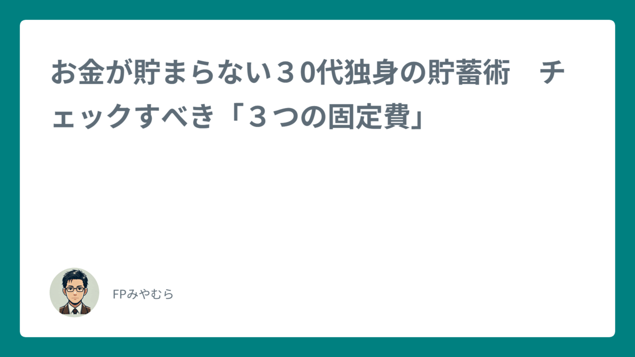 30代の独身の方は、気づかないうちに固定化された支出に縛られていることが多いと感じます。